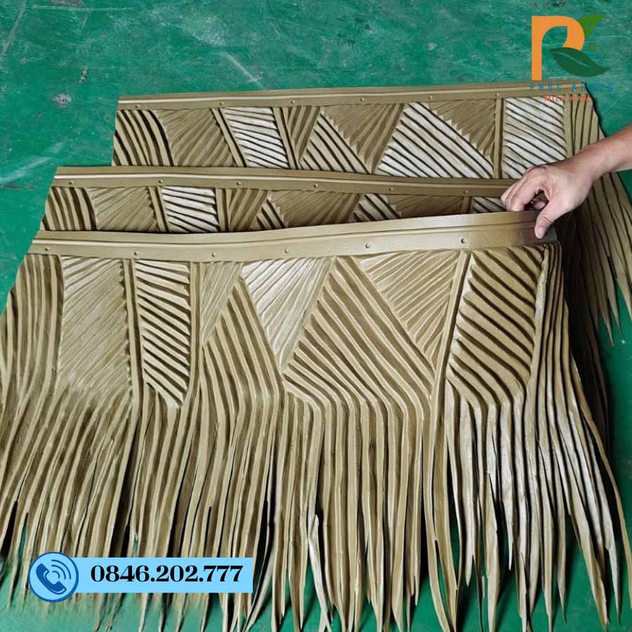 Lá dừa nhân tạo tại Bình Thuận là vật liệu được đúc khuôn mô phỏng từ tàu lá dừa thật, sau đó tạo sợi và tạo form cực kỳ tự nhiên, mềm mại. Chất liệu chính là nhựa nguyên sinh cao cấp, đảm bảo độ bền vượt trội dưới thời tiết khắc nghiệt.