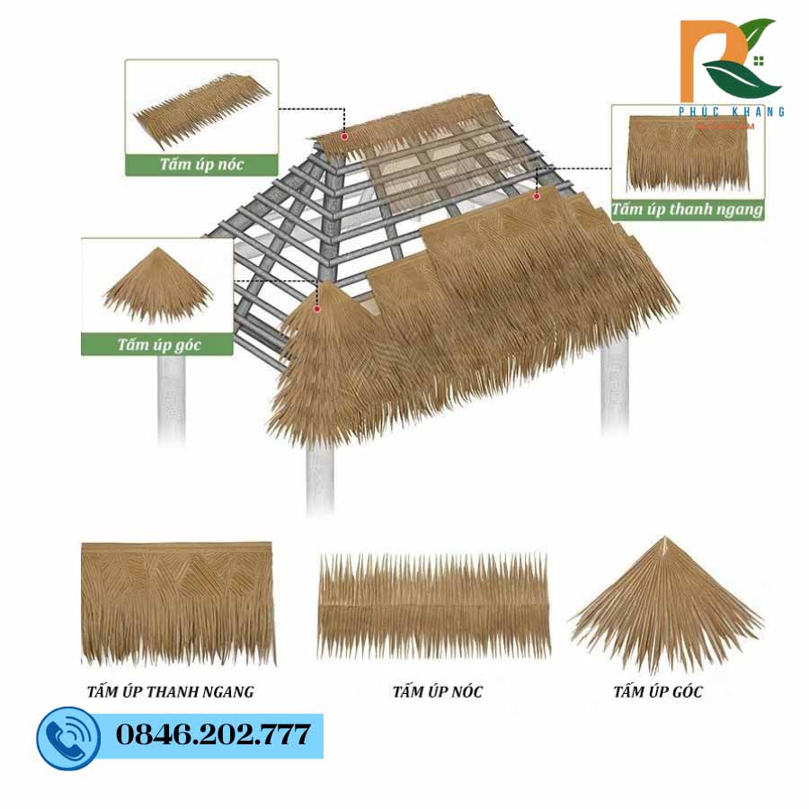 Phúc Khang Miền Nam cung cấp sản phẩm lá dừa nhân tạo tại Bình Thuận theo tiêu chuẩn sản xuất mới nhất 2025, với 3 loại tấm phù hợp từng vị trí mái: