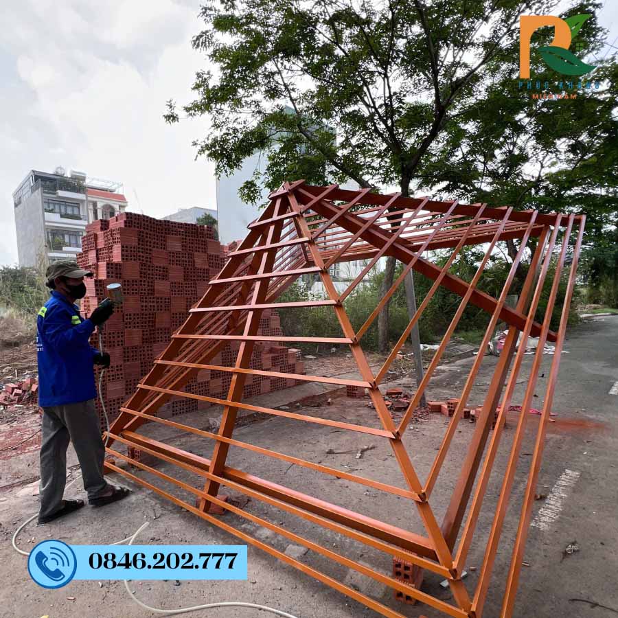 Đối với công trình chòi rơm nhân tạo tại Bình Thuận, Phúc Khang Miền Nam lựa chọn phương án lợp trực tiếp trên hệ khung.