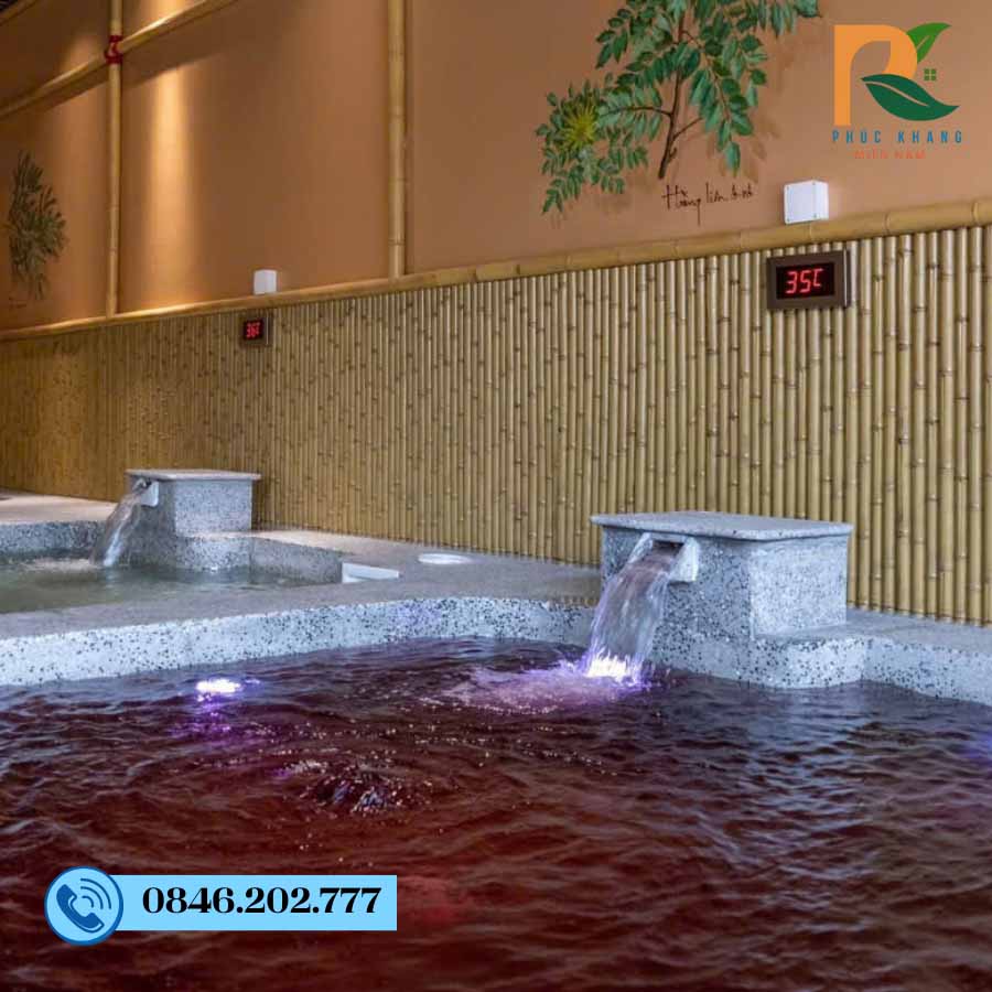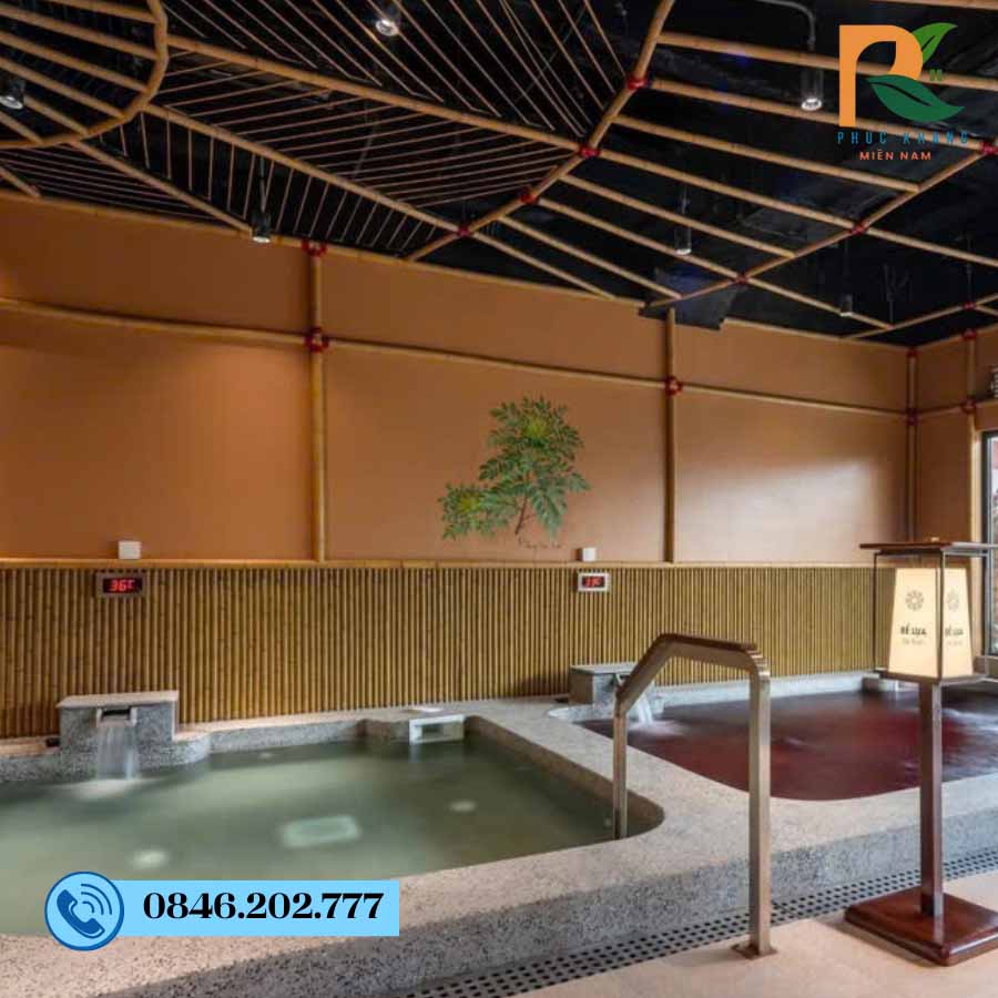 Các khu vực tắm khoáng, spa, và chòi nghỉ đều được thiết kế thống nhất, tạo nên phong cách eco-luxury – sang trọng nhưng thân thiện.