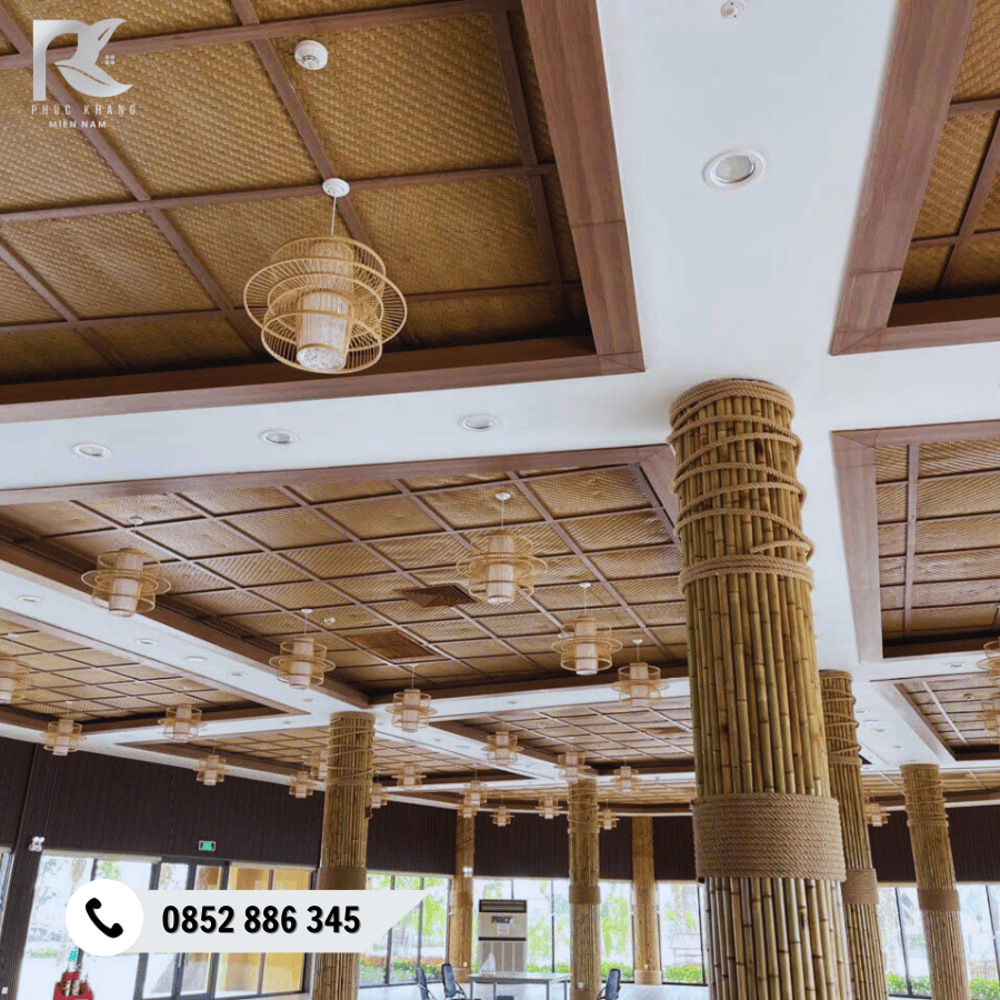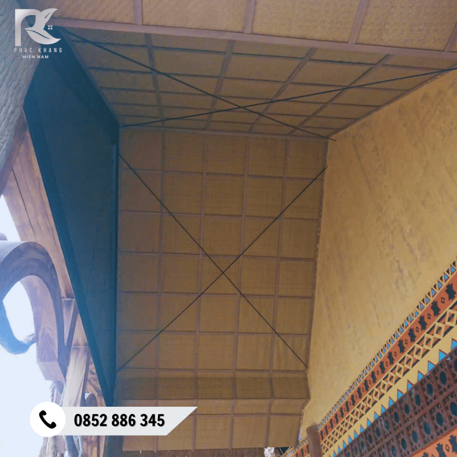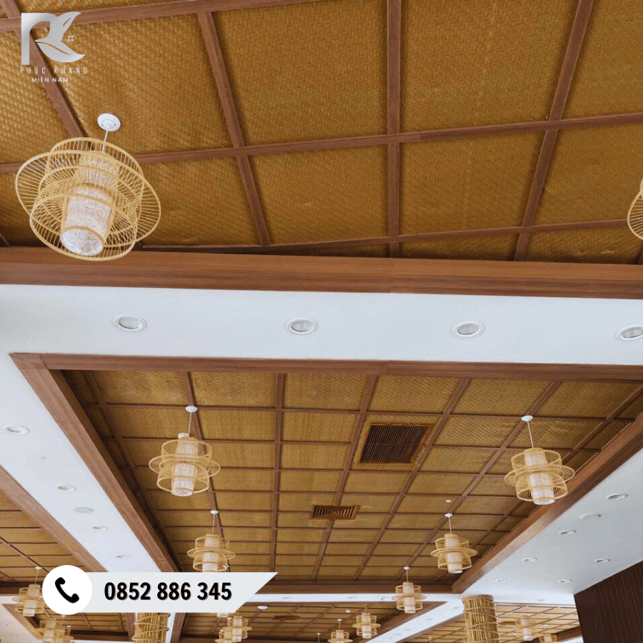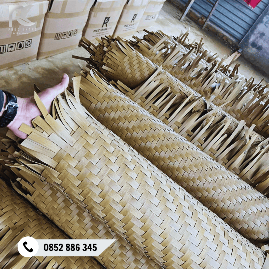 Vật liệu này mô phỏng y như cót tre thật: vân tre đẹp – màu tự nhiên – sợi đan đều, nhưng bền hơn gấp nhiều lần và không sợ mối mọt, không ẩm mốc.