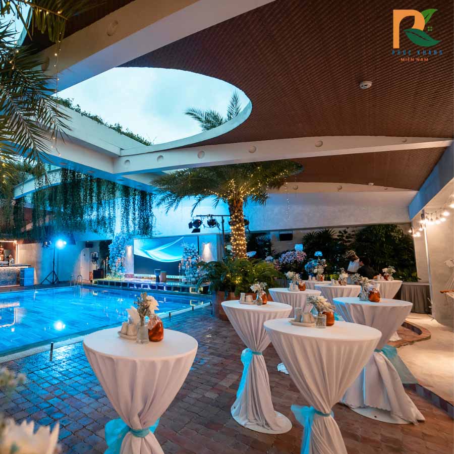 - Trần mái che quanh hồ bơi và khu tổ chức sự kiện.