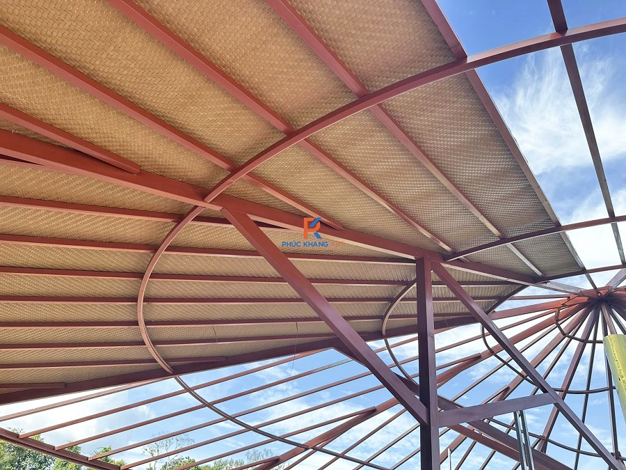 Thi công trần cót ép nhân tạo trên hệ mái tole