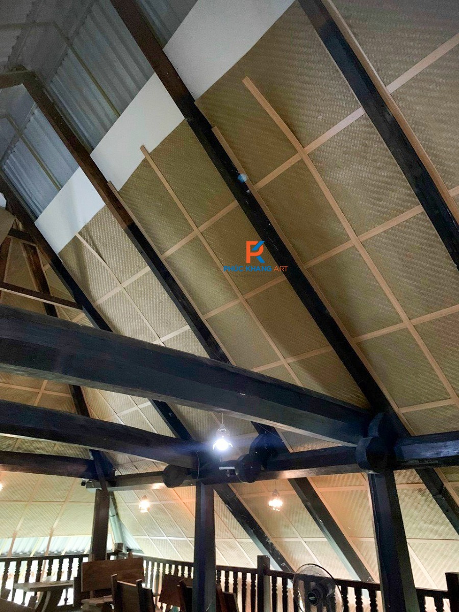 Thi công trần cót ép nhân tạo xuôi theo mái