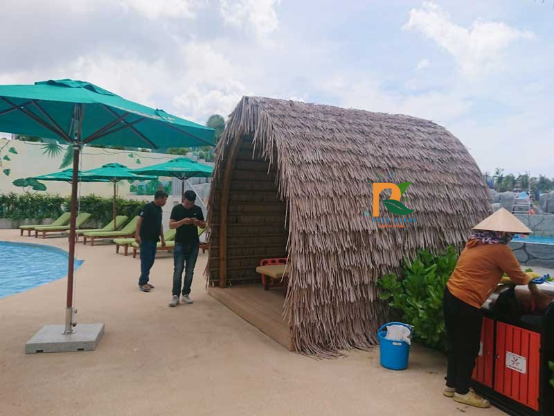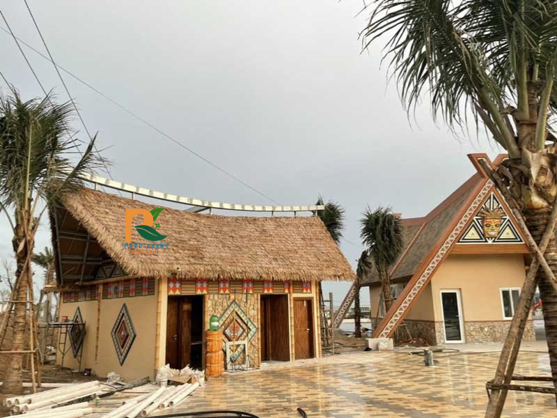Mái lá nhân tạo – sản phẩm sản xuất 100% tại Việt Nam, với nhà máy đặt tại huyện Hoài Đức, Hà Nội, hoàn toàn đáp ứng được các yêu cầu khắt khe trong thi công resort – khu nghỉ dưỡng cao cấp.