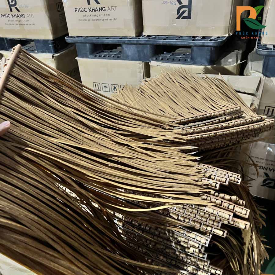- Lớp mái ngoài: Rơm nhân tạo vàng xám, được thi công khéo léo theo kiểu truyền thống.