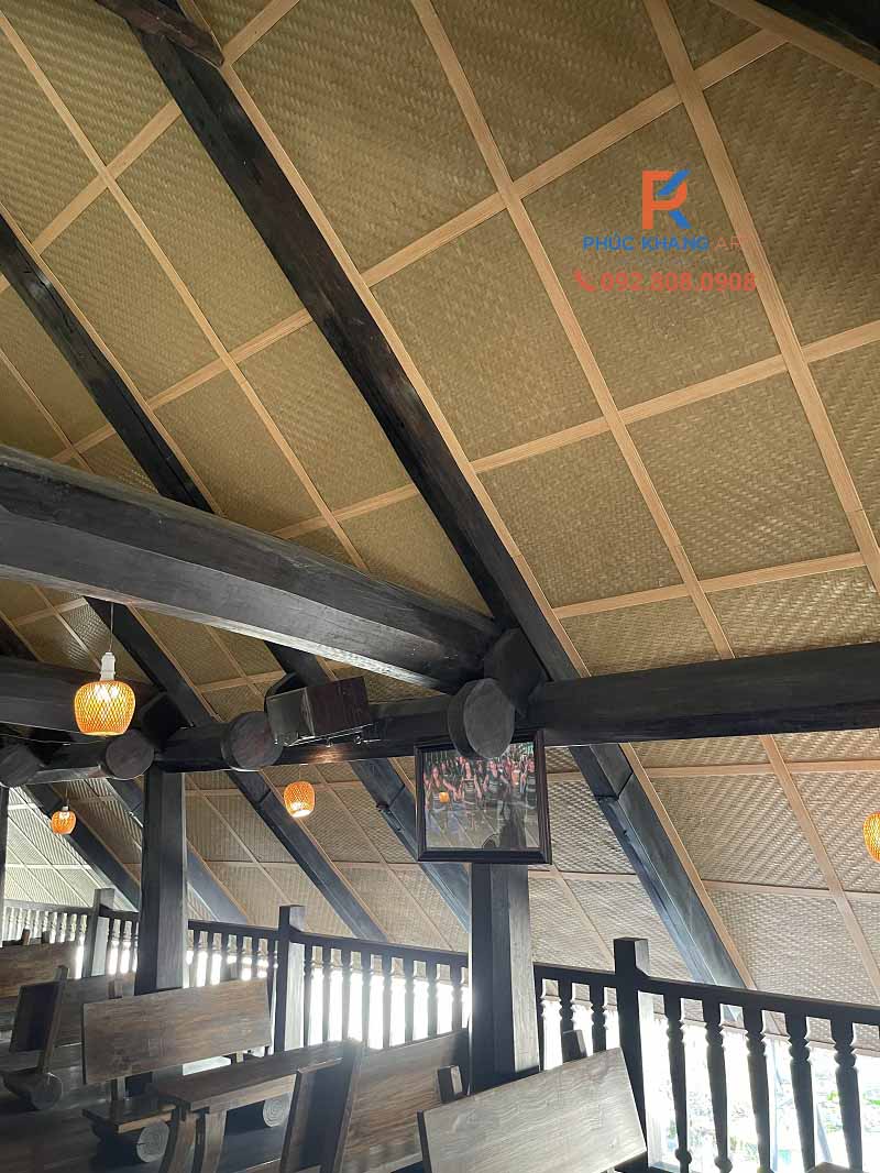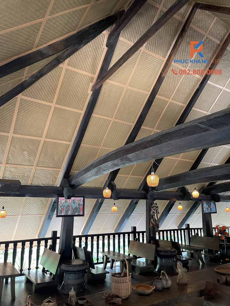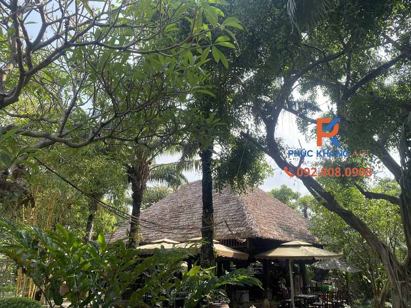 Khám phá công trình Nhã Viên Quán tại Biên Hòa với mái rơm nhân tạo và cót ép nhân tạo hiện đại. Bền đẹp, chống mối mọt, giữ vẹn nguyên nét truyền thống Việt.