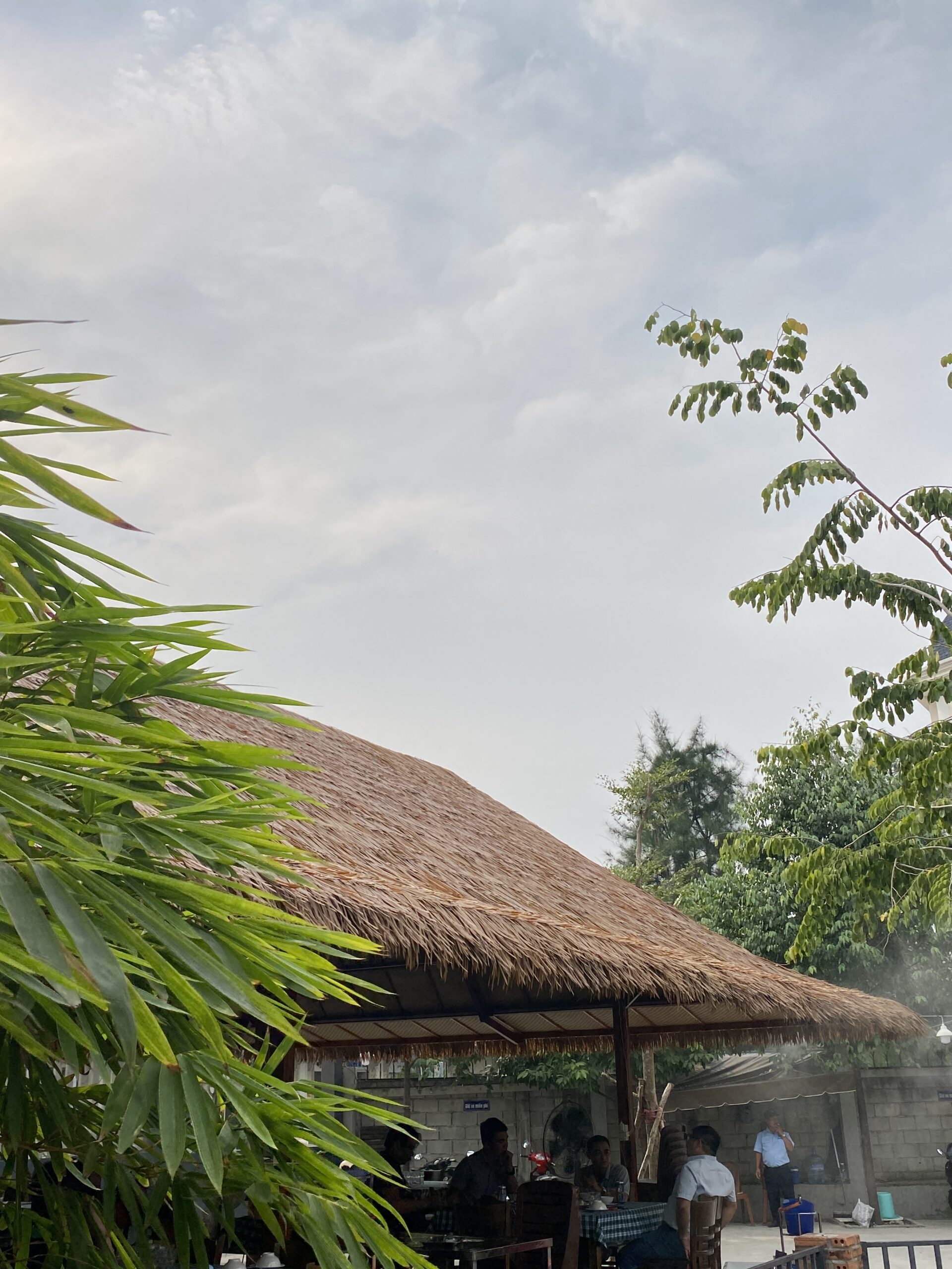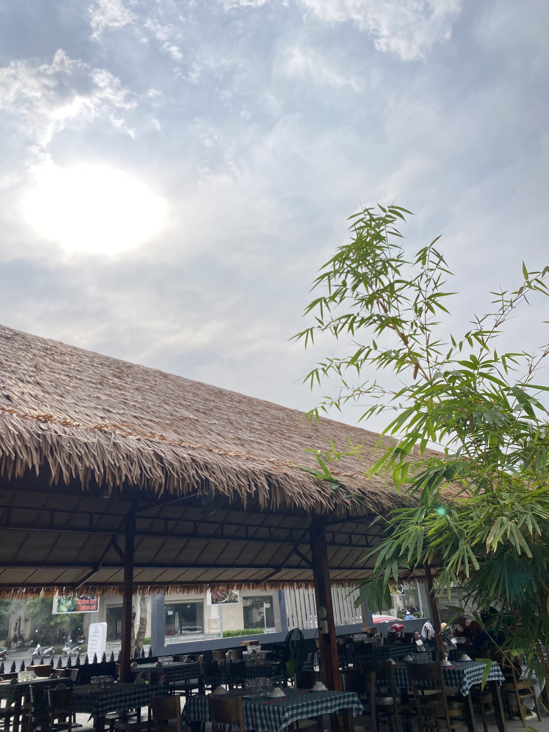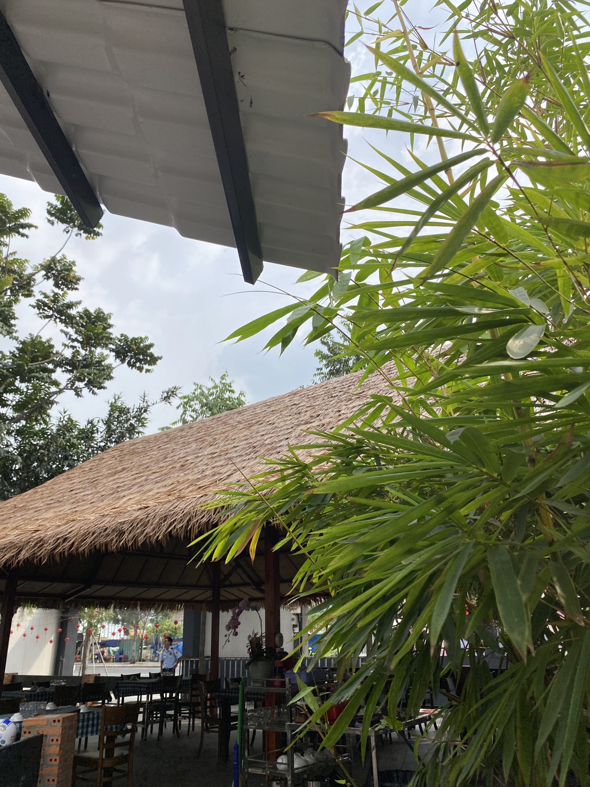 Hình 7. Không gian bên ngoài quán với mái lá nhân tạo (1)